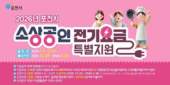 이번 사업은 전기요금 인상으로 가중된 고정비 부담을 직접 완화하기 위해 마련됐다. 지원 대상은 포천시에 사업장을 두고 대표자 주소가 관내에 등록된 연매출 3억원 이하 소상공인으로 사업장용 전기요금을 직접 부담하는 사업자다.