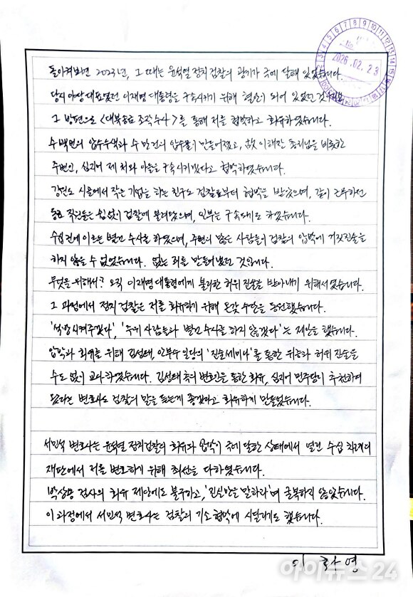 서 변호사는 그러면서 이화영 전 부지사가 보내온 친서를 공개했다.