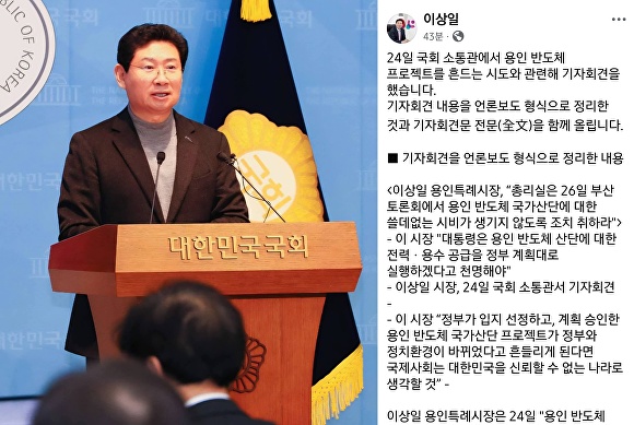 이 시장은 “대통령이 실행 의지를 분명히 하지 않은 채 논란을 방치한다면 반도체와 국가 미래를 걱정하는 시민과 국민은 의구심을 가질 수밖에 없다”고 말했다.