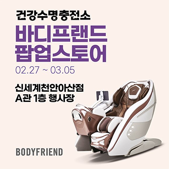 백화점은 오는 27일부터 3월 5일까지 A관 1층 아트리움에서 바디프랜드 체험형 팝업스토어 ‘건강수명 충전소’를 운영한다.