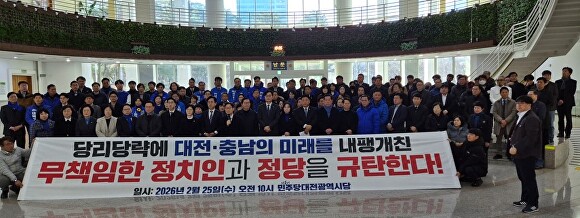특히 당원들은 “이 모든 파국의 책임은 오롯이 국민의힘과 이장우 대전시장, 김태흠 충남지사에게 있다”며 “충청권의 생존권을 볼모로 얄팍한 정치적 계산을 앞세웠다”고 비판했다.