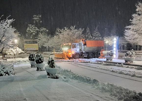 이번 제설에는 덤프 33대와 굴삭기 10대 등 장비 43대가 투입됐다. 공무원과 공무직 등 54명이 동원됐으며, 소금 97톤과 염수 24톤을 살포했다.