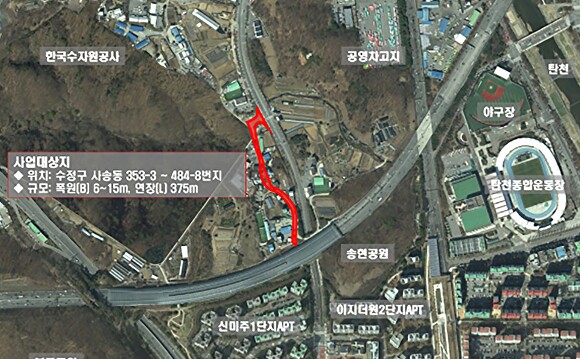 [아이뉴스24 정재수 기자] 경기도 성남시 수정구 사송동 353-3번지~484-8번지 일원에 오는 2030년까지 375m 길이의 도로 개설 사업이 추진된다.