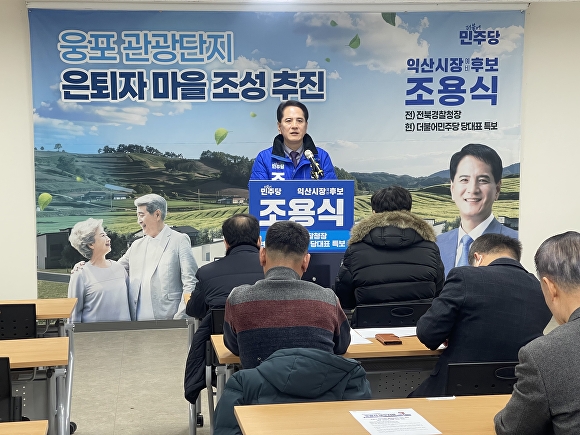[아이뉴스24 김양근 기자] 조용식 전북 익산시장 예비후보는 26일 “웅포 골프장 관광단지에 은퇴자 맞춤형 복합 주거단지 조성 사업을 추진하겠다”고 밝혔다.
