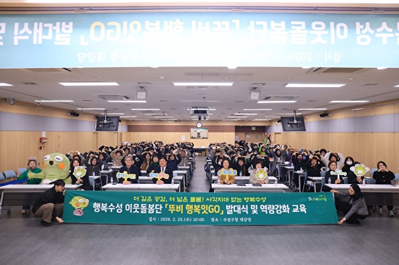 [아이뉴스24 이창재 기자] 대구 수성구는 지난 25일 구청 대강당에서 지역사회 인적 안전망 강화를 위한 이웃돌봄단 ‘뚜비행복잇고(GO)’ 발대식을 개최하고 본격적인 활동에 들어갔다.