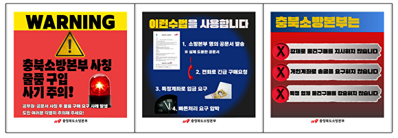 [아이뉴스24 이용민 기자] 충북소방본부가 충북 도내에서 소방기관을 사칭해 소방 용품 대리 구매를 요구하는 사기 범죄에 각별한 주의를 당부했다.