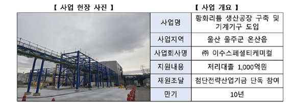 금융위는 "이수스페셜티케미컬은 중견기업으로 황화리튬 소재를 국내외에서 안정적으로 공급하는 의미가 있다"며 "울산광역시가 글로벌 이차전지 산업 선도 도시로 성장하는 데 이바지할 것"이라고 기대했다.