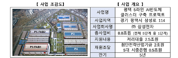 삼성전자 평택 P5는 총 60조원 이상을 투입하는 초대형 반도체 투자 프로젝트다. 삼성전자는 대규모 금융 지원에 힘입어 2030년께로 계획했던 설비 가동 계획을 2028년으로 앞당기기로 했다.