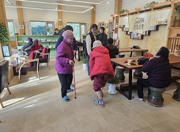 전남 순천시 '가천산방'에서 어르신들이 족욕체험 치유프로그램을 하고 있다. [사진=순천시]