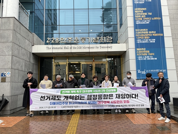 시민단체들은 “양당은 민주적 절차를 무시하고 추진한 대구경북통합특별법을 즉각 폐기하라”며 “만약 주민 의견을 묵살한 채 3월 중 다시 법안 상정을 시도한다면 이는 헌정사와 지방자치 역사에 남을 반역 행위가 될 것”이라고 경고했다.