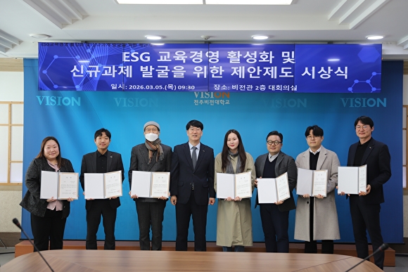 [아이뉴스24 박종수 기자] 전주비전대학교(총장 우병훈)는 5일 교내에서 ‘2025년 ESG 교육경영 활성화 및 신규과제 발굴을 위한 제안제도’ 시상식을 개최했다.