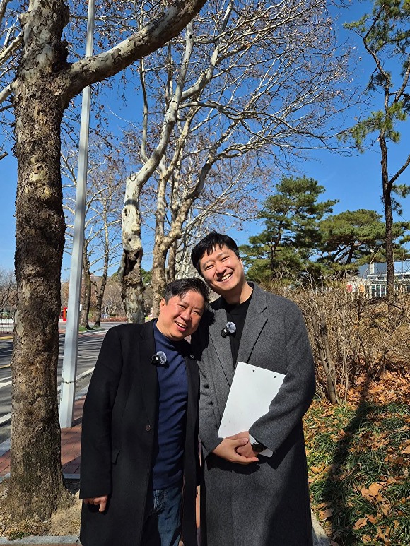 영상인터뷰를 마친 김지만 대구시의원과 우재준 의원 [사진=우재준 페이스북 캡처]