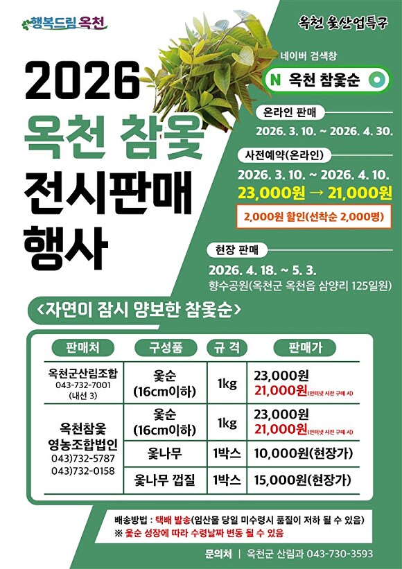 [아이뉴스24 소진섭 기자] 충북 옥천군은 오는 4월 10일까지 참옻순 온라인 사전 예약 주문을 받는다고 12일 밝혔다.