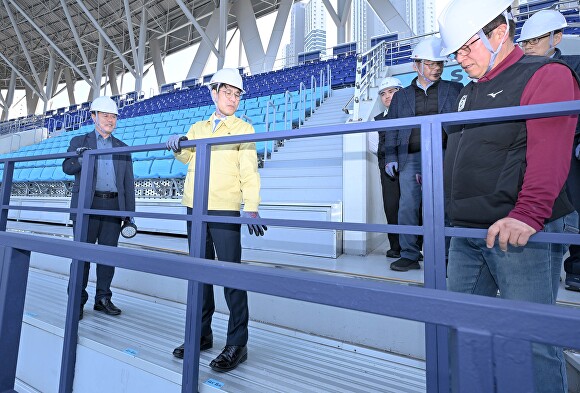 현장에서는 관람객 이동 동선과 출입구, 관람석, 편의시설 등 시설 전반의 안전 상태를 집중 점검했다. 특히 경기 당일 혼잡이 예상되는 구간을 중심으로 안전사고 예방 대책을 확인했다.