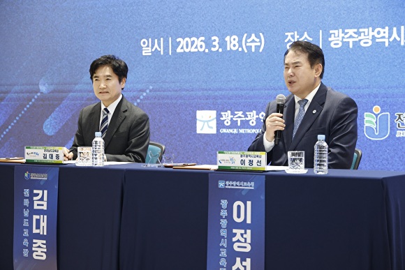 행사는 광주 실무준비단과 전남 통합추진단이 추진 경과를 설명하고, 이어 이정선 광주시교육감과 김대중 전남도교육감이 참석자 질의에 답변하는 형식으로 진행됐다.