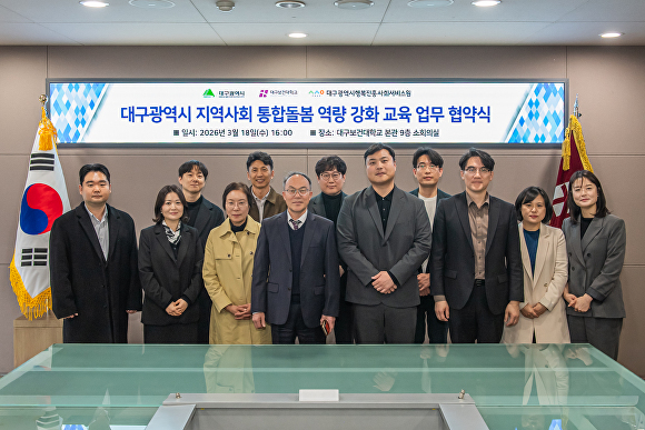 대구보건대학교는 보건·복지 분야 교육 인프라와 전문 인력을 바탕으로 통합돌봄 교육 프로그램 개발과 운영에 참여해 현장 중심의 돌봄 서비스 전문성 제고에 기여할 예정이다.