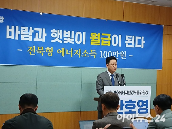 [아이뉴스24 김양근 기자] 안호영 국회 기후에너지환경노동위원장은 23일 전북도의회 브리핑룸에서 기자회견을 열고 재생에너지 발전 수익을 도민에게 환원하는 '전북형 에너지 기본소득 시대'를 열겠다고 밝혔다.