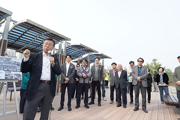 신상진 시장은 이날 분당~수서간 도시고속도로 상부 공원(매송2교 앞)에서 현장 점검을 실시하고 지역 주민 및 관계자들과 함께 생활 불편 해소 방안을 점검했다.
