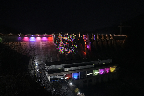 거대한 댐 구조물을 캔버스 삼아 펼쳐지는 화려한 빛의 영상은 낮과는 또 다른 감동을 선사한다.
