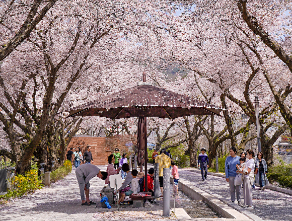 수안보에서 벚꽃을 즐기고 있는 충주 시민들. [사진=충주시]
