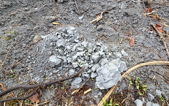 손으로 조각 하나를 들어보니 표면은 단단하게 굳어 있었고 힘을 줘서 누르자 가루처럼 흩어졌고 물에 닿으면 녹기도 했다. 일반 토양에서는 보기 어려운 형태였다. 현장 곳곳에서는 이와 같은 회색 덩어리가 반복적으로 확인됐다.