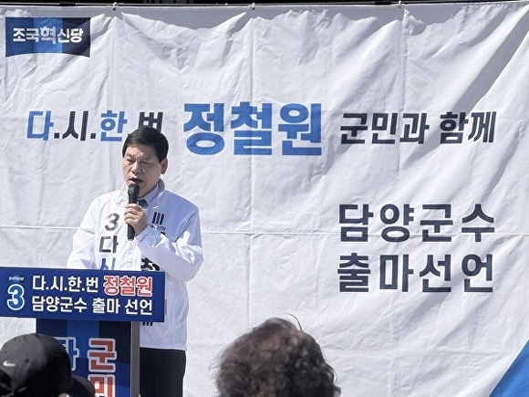 [아이뉴스24 김상진 기자] 정철원 담양군수가 7일 오후 담양시장 야외광장에서 재선 도전을 공식 선언하며 본격적인 선거 행보에 나섰다.