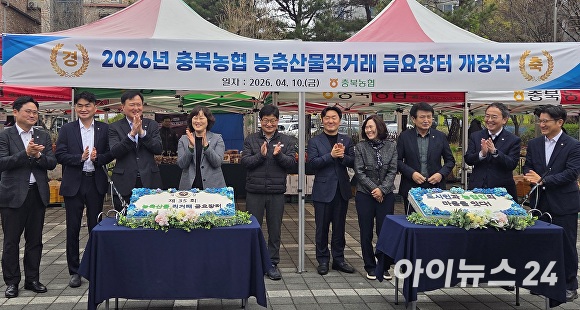 [아이뉴스24 이용민 기자] 충북농협(총괄본부장 이용선)은 10일 농협 충북본부 광장에서 ‘2026 충북농협 농축산물직거래 금요장터 개장식’을 개최했다.