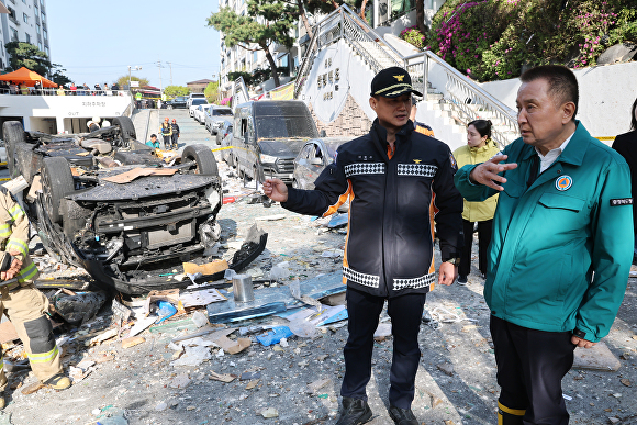 인근 아파트 105세대와 상가 16곳, 주택 10가구, 차량 91대가 유리창·내외부 파손 등 피해를 본 것으로 잠정 집계됐다.