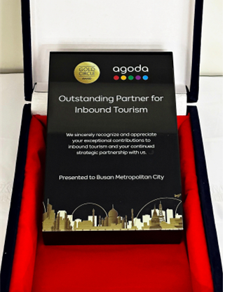 아고다 ‘인바운드 관광 우수 파트너’ 상패. [사진=부산광역시]