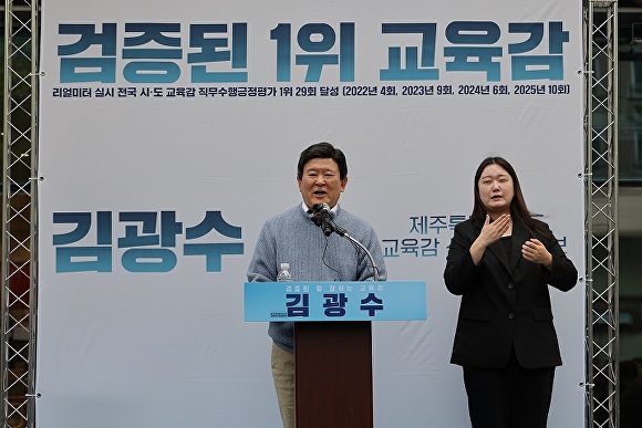 또, 청소년 무료버스 지원, 특수교육 및 장애 공감 교육 확대, 디지털 기반 학습 환경 구축, 자율형 공립고와 협약형 특성화고, 온라인 학교, 제주형 자율학교 등을 언급하며 "이러한 성과는 보여주기식 정책이 아닌, 현장에서 실제로 작동하는 교육이 만들어낸 결과"라며 "저는 이미 증명된 교육을 바탕으로 다음 4년을 준비하겠다"고 강조했다.