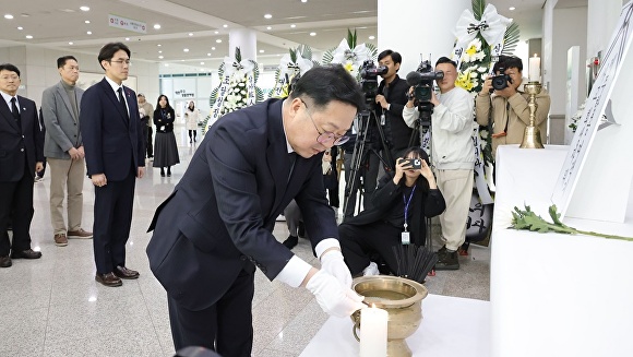 [아이뉴스24 박희석 기자] 이장우 대전시장과 시청 간부공무원들은 30일 시청 1층에 마련된‘제주항공 여객기 사고 희생자 합동분향소’를 방문하고 조문했다.