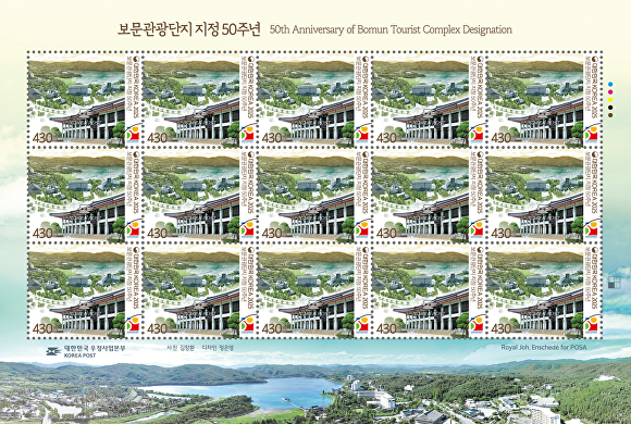 보문관광단지는 1975년 대한민국 제1호 관광단지로 지정된 이래, 반세기 동안 한국 관광의 상징적인 공간으로 자리해왔다. 기념우표에는 대한민국 최초의 국제컨벤션센터인 육부촌(현 공사 사옥)을 중심으로 보문호와 관광단지 전경이 담겼다.
