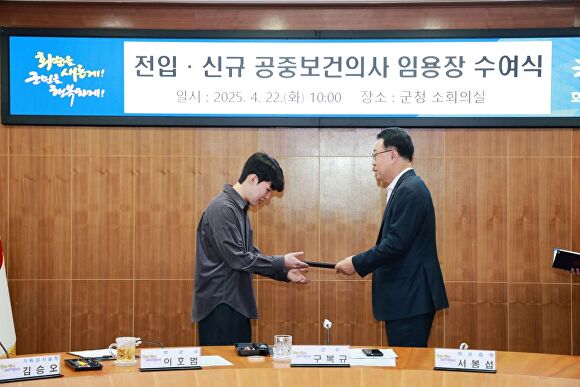 이와 더불어 군은 공중보건의사의 군에 대한 소속감을 고취하고, 책임감 있는 진료서비스를 제공할 근무 분위기 조성을 위해 임용장 수여, 직무수행에 필요한 교육과 ‘화순 바로알기 탐방’을 실시했다.