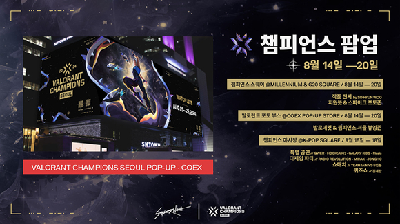 라이엇게임즈(한국 대표 조혁진)는 '발로란트 챔피언스 서울 팝업'이 오는 14일부터 20일까지 서울 강남구에 위치한 코엑스 밀레니엄 광장에서 진행된다고 13일 발표했다.
