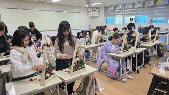 정우윤 치유농업사가 강사로 참여해 학생들과 함께 솔방울·목화솜 등 식물 소재를 활용한 트리 형태의 크리스마스 소품을 제작한다. 이를 통해 학생들은 식물의 구조와 활용 방식을 자연스럽게 이해하고, 농업을 친숙하게 접할 수 있다.