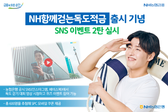 이번 이벤트는 농협은행 공식 SNS(인스타그램, 페이스북) 채널에 등재된 '디지털 독도 걷기 대회 영상'을 시청하고 퀴즈 정답을 댓글로 작성한 고객 중 600명을 추첨해 SPC 모바일상품권(5천원)을 제공한다.